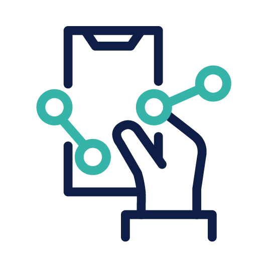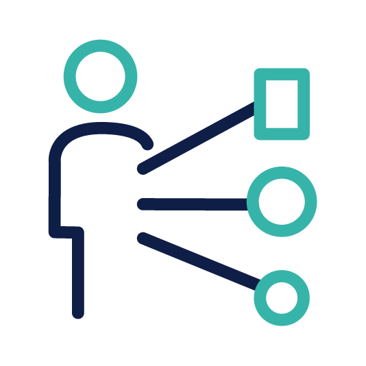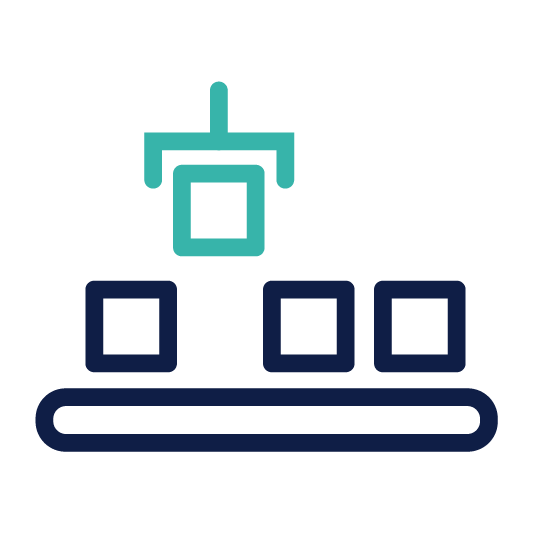 Besteht der Anspruch, dass ein Icon eigenständig die Marke MULTIVAC widerspiegeln soll (siehe Markenerkennung in der Typografie), kann das Grundicon in MULTIVAC Logo Blau und einzelne Elemente Elemente in Türkisblau eingefärbt werden.