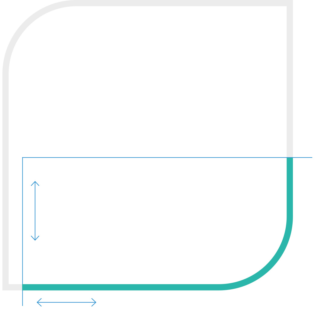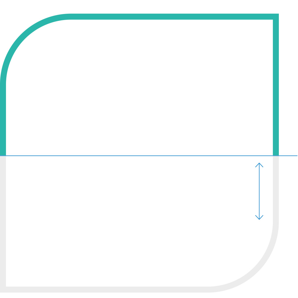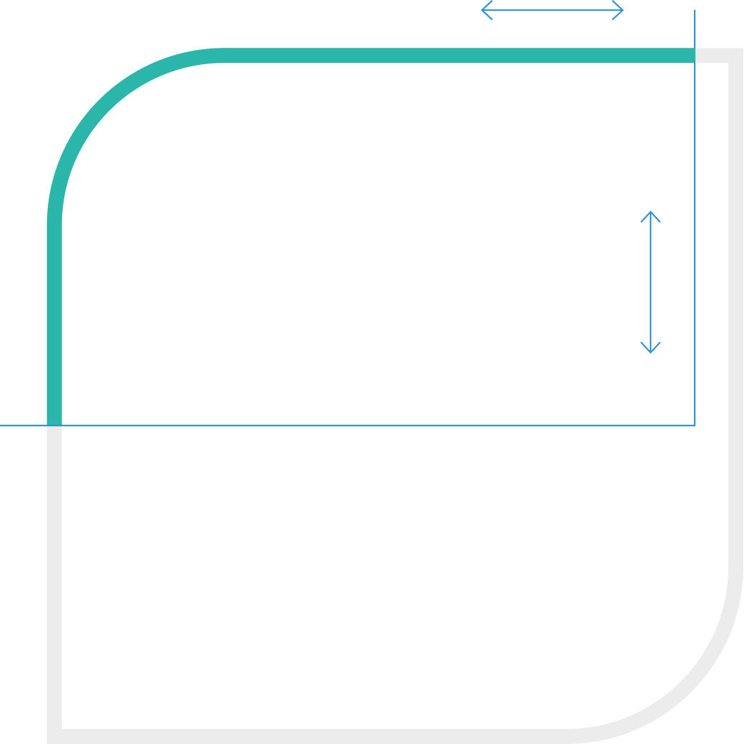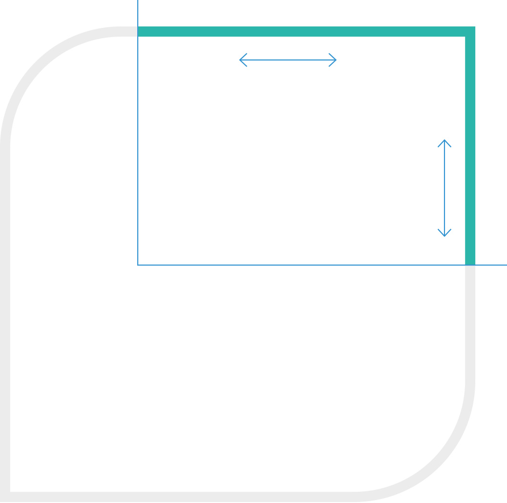 Das Beschneiden des Visuals ist horizontal von unten|oben und|oder vertikal möglich. Für jeden Anschnitt gilt: Die geometrische Form des Markenzeichens muss klar erkennbar sein. Ein Anschnitt, der alle abgerundeten Ecken beschneidet, ist ausgeschlossen. Das Visual wird nicht durch nebeneinander liegende Bilder und|oder Flächen angeschnitten – außer es handelt sich um eine funktionale Interaktionsfläche.