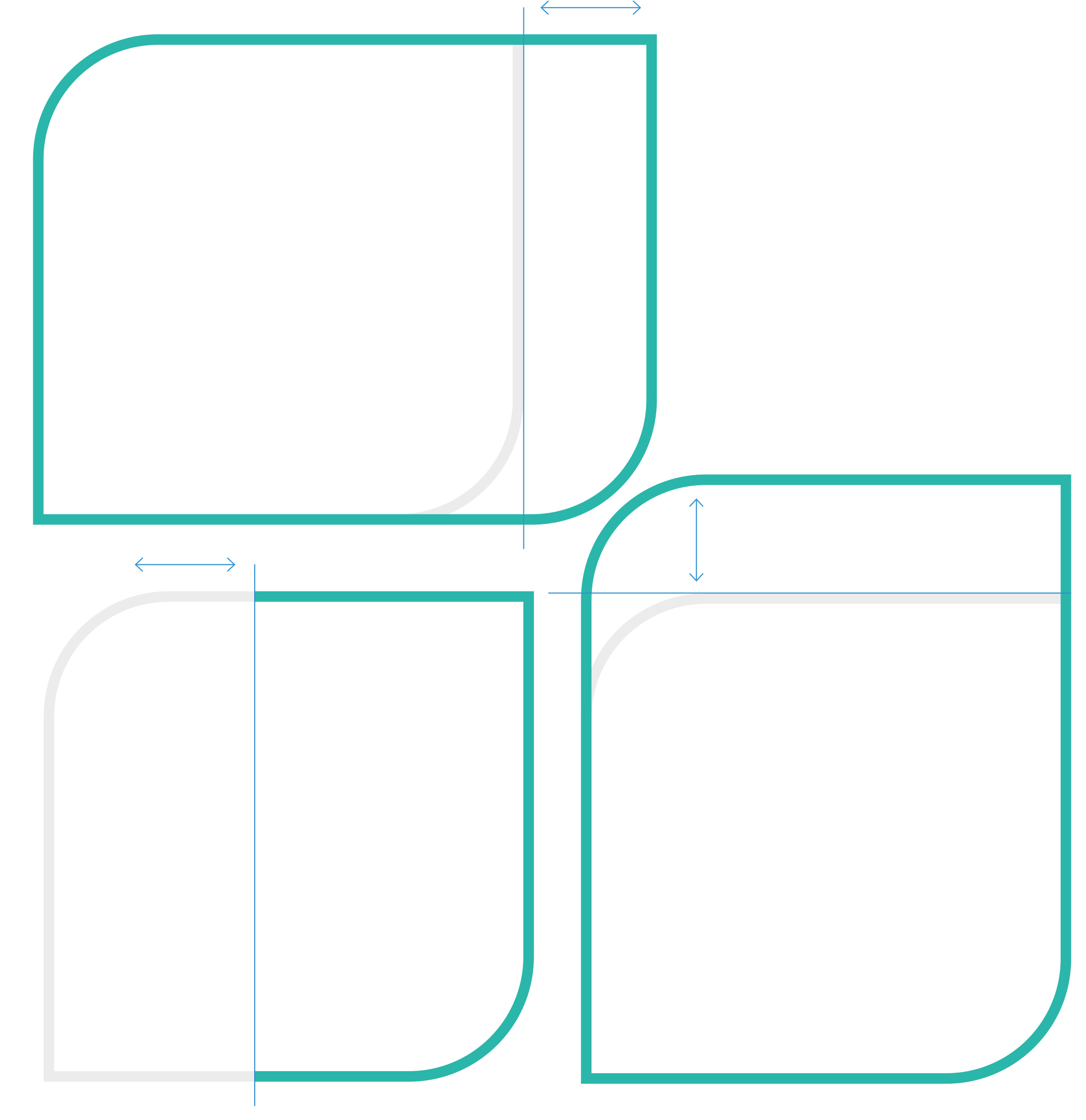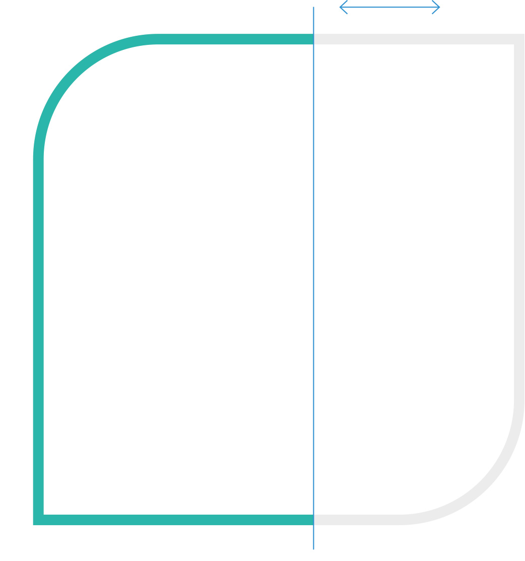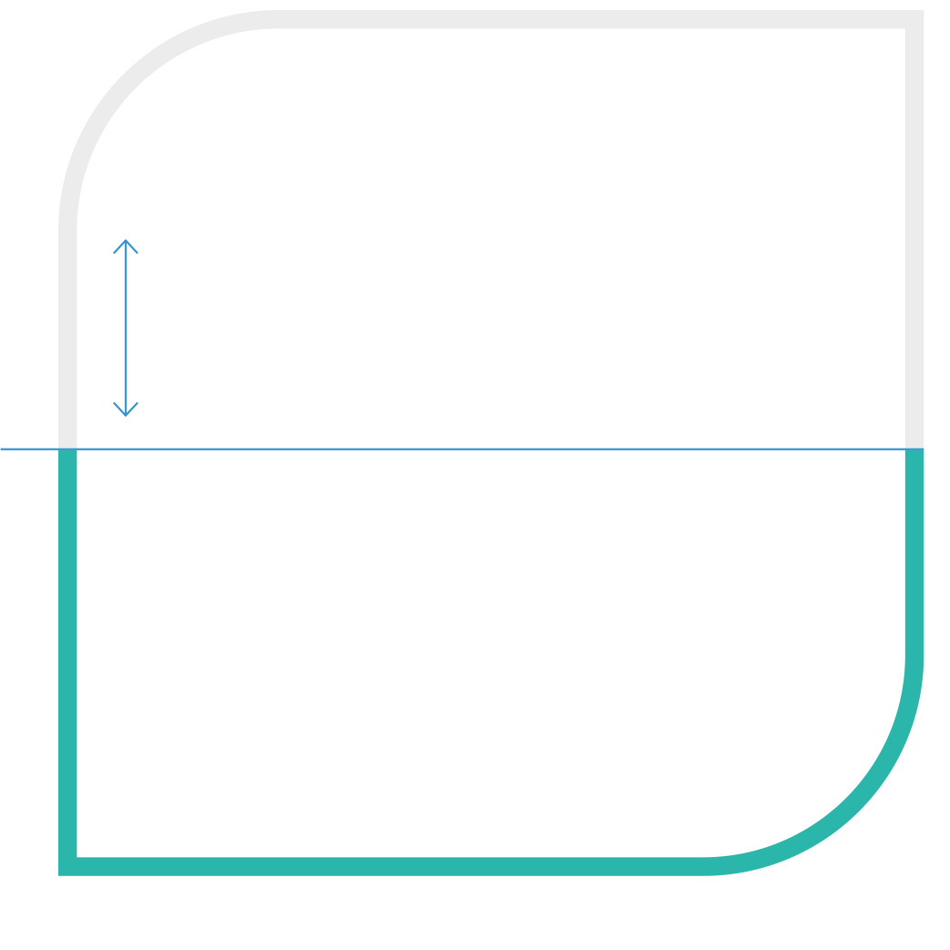 Das Beschneiden des Visuals ist horizontal von unten|oben und|oder vertikal möglich. Für jeden Anschnitt gilt: Die geometrische Form des Markenzeichens muss klar erkennbar sein. Ein Anschnitt, der alle abgerundeten Ecken beschneidet, ist ausgeschlossen. Das Visual wird nicht durch nebeneinander liegende Bilder und|oder Flächen angeschnitten – außer es handelt sich um eine funktionale Interaktionsfläche.