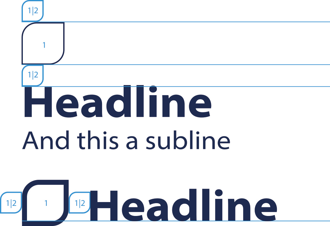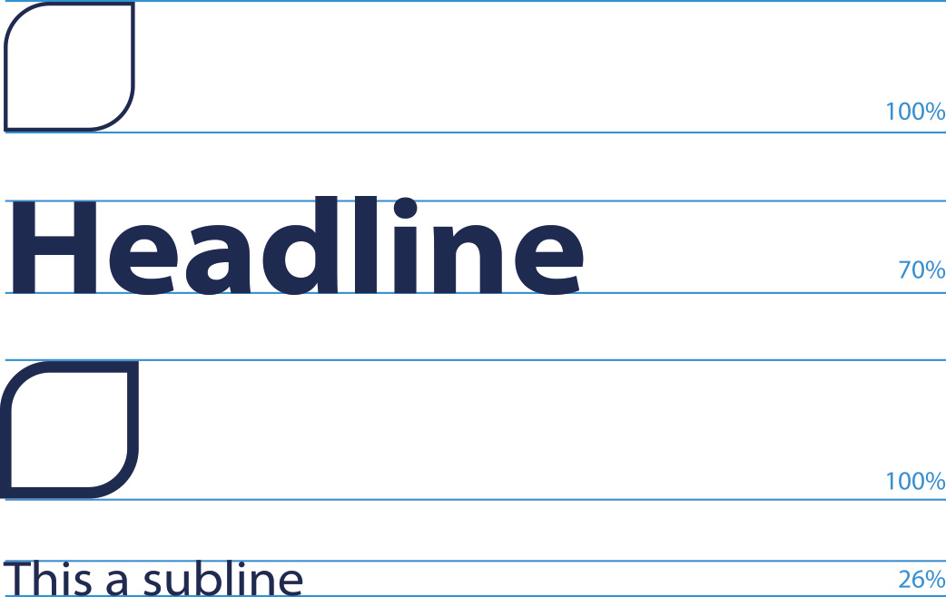 Das Verhältnis zwischen dem Visual und der Typografie kann grundsätzlich frei gewählt werden. Das Visual wirkt besonders harmonisch mit dem Text, wenn die Versalhöhe 70% der äußeren Höhe des Visual beträgt. Daraus lassen sich weitere Kennzahlen (26 % und 11,5 %) ableiten (siehe Abbildung). Aber das nur als Orientierungshilfe.